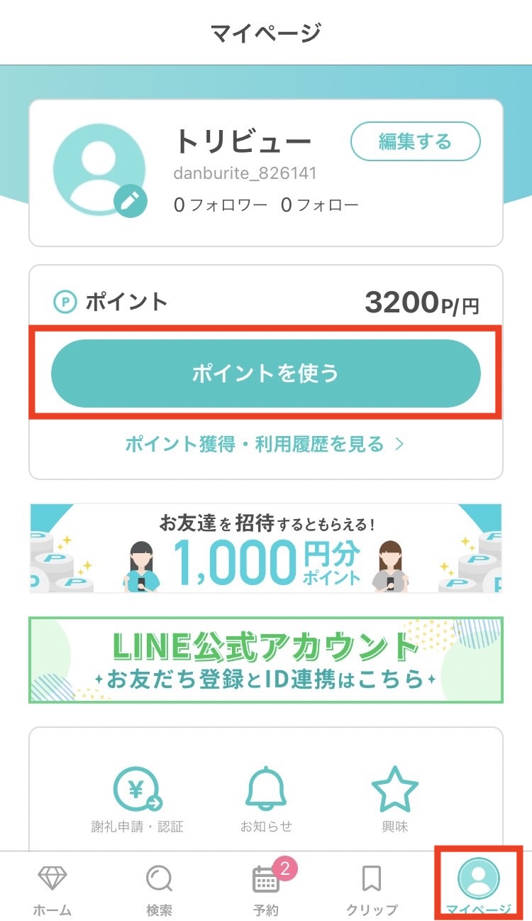 ポイント利用の際はお会計時に必ずクリニックスタッフへご申告後、操作をお願いいたします!