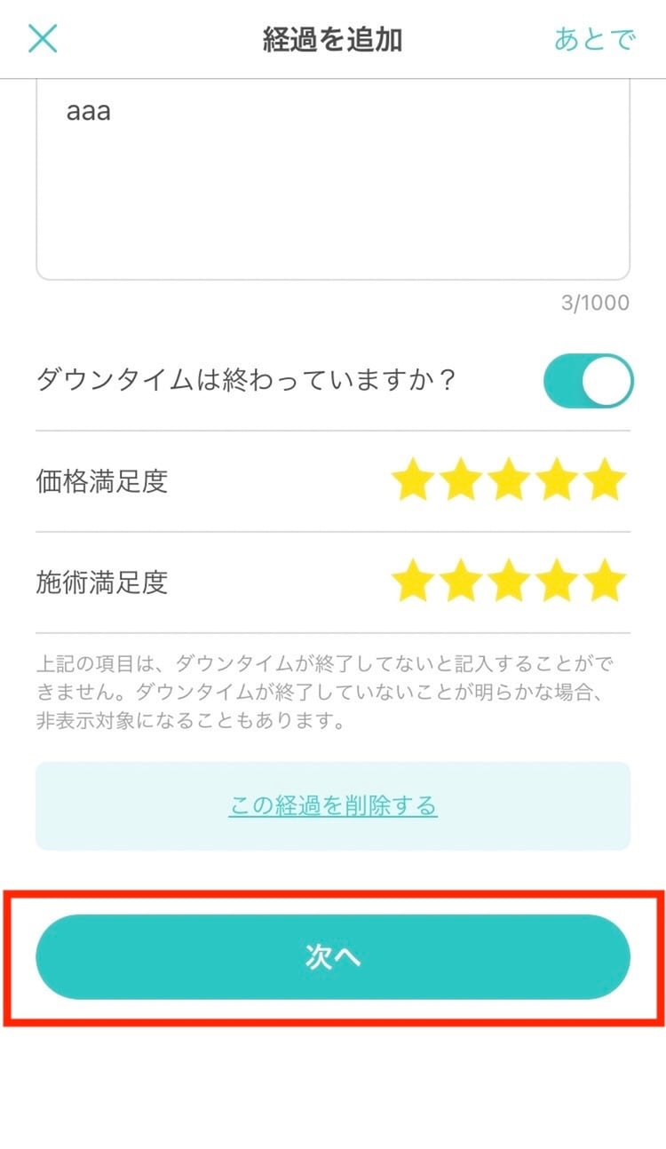 経過を削除したい場合は、「次へ」の上にある「この経過を削除する」をタップしてください。