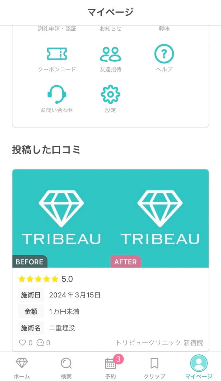 マイページ内、下部からも口コミが確認できます。